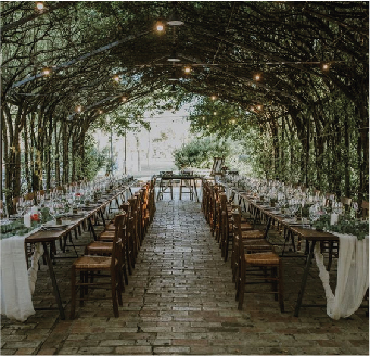 Questo stile unisce l’ atmosfera di “campagna”, country per l’ appunto, ad elementi eleganti. La location solitamente è immersa nel verde può essere: un casale, un agriturismo, una masseria, l’atrio di un castello o di una tenuta medievale, un vigneto oppure un “relais” o, luogo rilassante che dir si voglia, in montagna. In questo caso l’ abito da sposa sarà un modello scivolato con tessuti leggeri e/o ricamati, l’ allestimento floreale sarà un mix tra rose, fiori di campo, girasoli, foglie di eucalipto e di edera. Sedie campagnole, tavoli imperiali ma anche drappi in tessuti naturali, backdrop/fondali con richiami alla natura, cornici in legno e ceste di paglia sono gli addobbi Country Chic che ti servono per completare l’allestimento. Un tableau de mariage Country Chic composto da bottiglie in vetro, legno e inserti di foglie e fiori, o perchè no, una vecchia bici usurata ben addobbata di fiori con semplici cartoncini di colore neutro sul quale scrivere i nomi dei commensali dei vari tavoli degli invitati. Gli sposi che prediligono questo stile scelgono di regalare ai loro invitati, bomboniere con prodotti del territorio come miele, marmellata, vino, liquori, con etichette personalizzate e, a volte, con confezioni particolari. Di tendenze è includere anche sacchetti di semi di fiori e piante per vedere “crescere l’amore”.