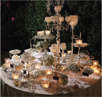 Spiccatamente ricco si rifà all’ opulenza delle corti francesi di Versailles. Palette dai colori molto accesi come il rosso, il porpora, bordeaux , fucsia, viola, il tutto abbinato all’oro. Runner di broccati preziosi vestono tavoli a specchio, torte a 5 o più piani con inserti di fiori quali, orchidee, ortensie, rose dalie, garofani e spighe di grano raccolti in coppe e vasi dorati o in bronzo, completano le decorazioni candelabri, lampadari in cristallo ed oro, candele, trionfi di frutta, tovagliato damascato.