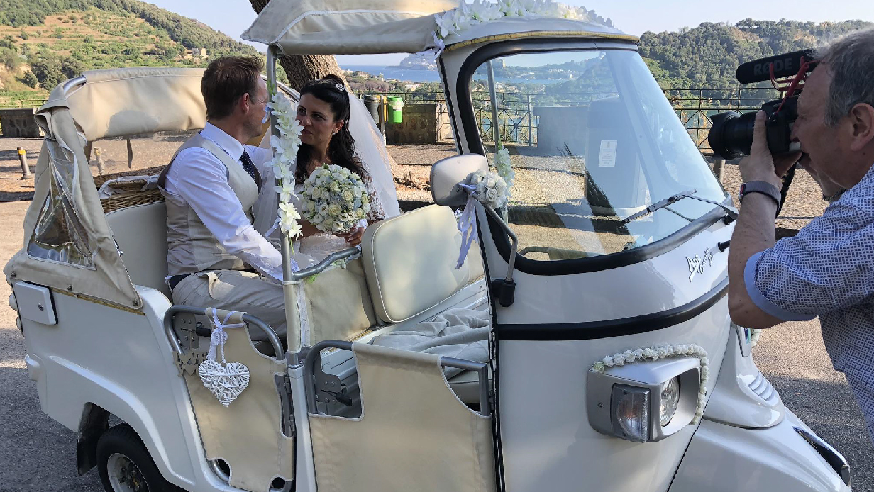Che arrivino dal mare, dal cielo o da terra gli sposi necessitano di un mezzo di trasporto a mio avviso scenografico e d’effetto, che si armonizzi col tema e lo stile scelto e che rappresenti in toto lo spirito dell’evento. Per cui diamo spazio alla fantasia, sia un asinello, un auto lussuosa, una carrozza romantica, una moto ape allestita per l’occasione, una barca, un elicottero, un pulmino panoramico dove far cominciare la festa fin da subito…a voi la scelta!