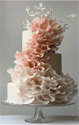 troviamo ancora la Ruffle cake, caratterizzata da decorazioni “increspate” realizzate con la crema di burro, che donano un aspetto molto romantico ed elegante, vere sculture commestibili,